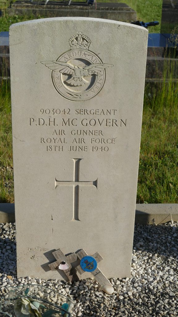Sergeant (Air Gunner) Patrick Denis Humphrey McGovern, RAFVR 903042, killed on active service 18/06/1940