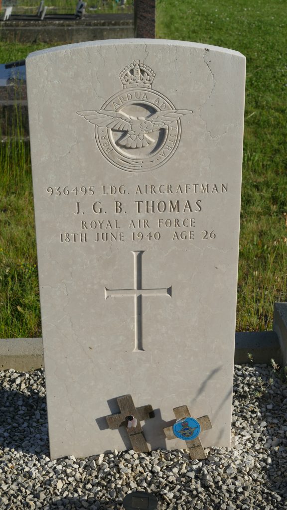 Leading Aircraftman James Gilbert Broadbent. Thomas, RAFVR 936495, age 26, killed on active service 18/06/1940,