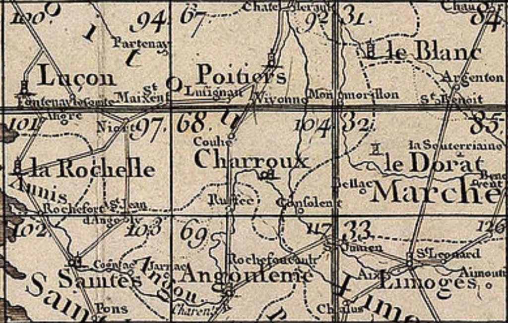 « La carte de Cassini ou carte de l’Académie est la première carte topographique et géométrique établie à l’échelle du royaume de France dans son ensemble. Il serait plus approprié de parler de carte des Cassini, car elle a été dressée par la famille Cassini, principalement César-François Cassini (Cassini III) et son fils Jean-Dominique Cassini (Cassini IV) au XVIIIe siècle… On peut considérer que l’aventure de la carte de France des Cassini trouve ses racines sous le règne de Louis XIV, avec la création de l’Académie des Sciences, et les grandes ambitions de Colbert concernant la marine française et les côtes de France à défendre d’une part, et l’état d’imprécision de la géographie du pays, d’autre part ; il s’avère en effet que les distances entre localités, par exemple, sont bien souvent estimées en journées de chevauchée, sans mesure réelle des parcours effectués… Cette carte constitue pour l’époque une véritable innovation et une avancée technique décisive. Elle est la première carte à s’appuyer sur une triangulation géodésique dont l’établissement a pris plus de soixante ans. Les quatre générations de Cassini se sont succédé pour réaliser ce travail. La carte ne localise pas précisément les habitations ou les limites des marais et forêts, mais le niveau de précision du réseau routier représenté est tel qu’en superposant des photos satellite orthorectifiées aux feuilles de la carte de la France, on obtient de spectaculaires résultats… » source: https://fr.wikipedia.org/wiki/Carte_de_Cassini