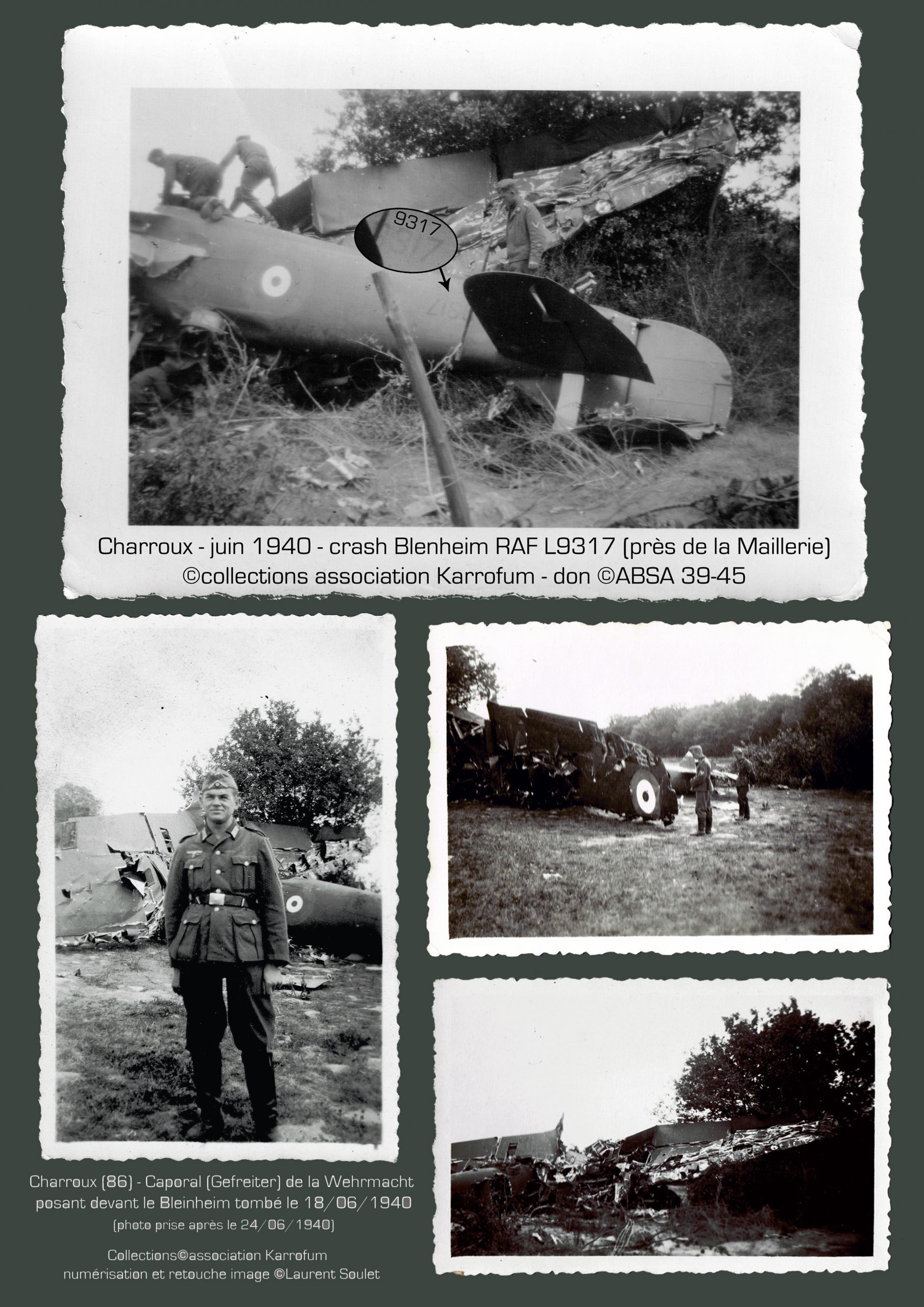 Quatre photos inédites, prises sur le lieu du crash de l’avion bombardier de la Royal air Force le 18 juin 1940, sont venues enrichir les collections que l’association Karrofum constitue sur l’histoire de Charroux et de son pays.